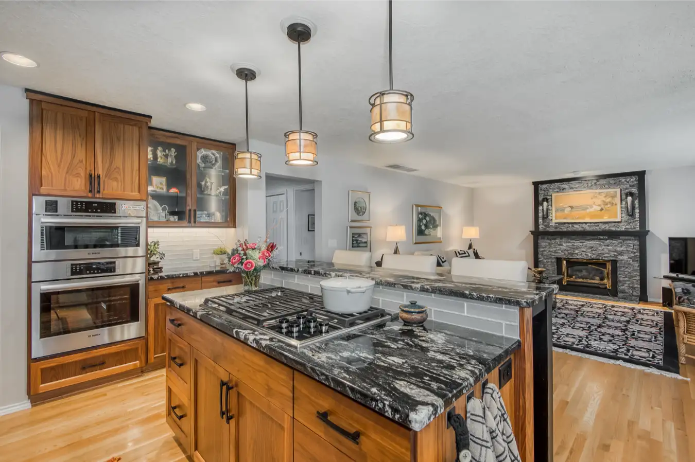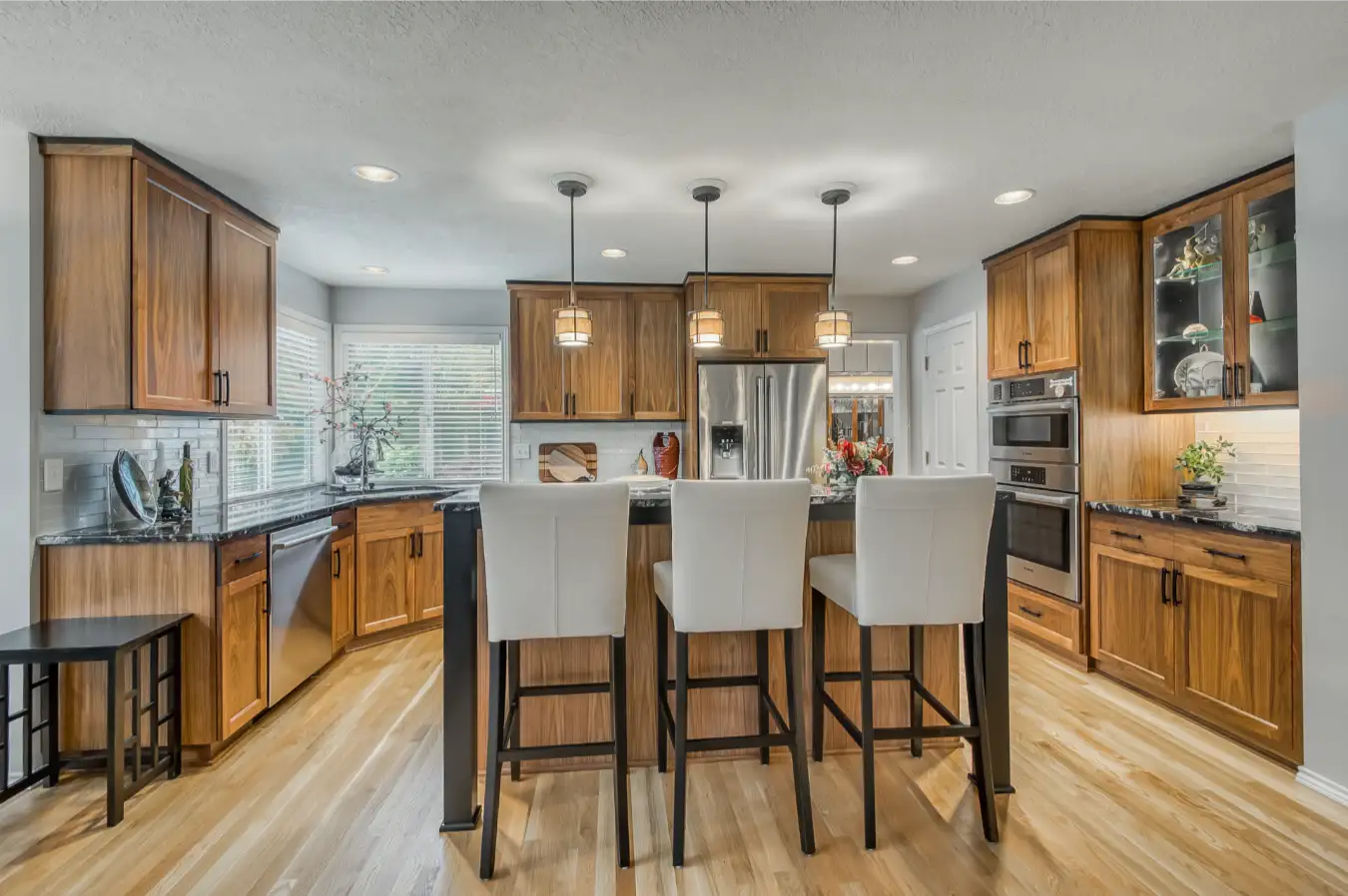 Over the years, we’ve had the privilege of completing four custom remodeling projects for Diane in Tualatin, including a kitchen, primary bathroom, laundry room, and an outdoor structure. Working alongside interior designer Susan Green, each space reflects Diane’s unique style brought to life through walnut cabinetry, high-end fixtures, custom lighting, and beautifully refinished hardwoods. A truly personal transformation crafted with care.