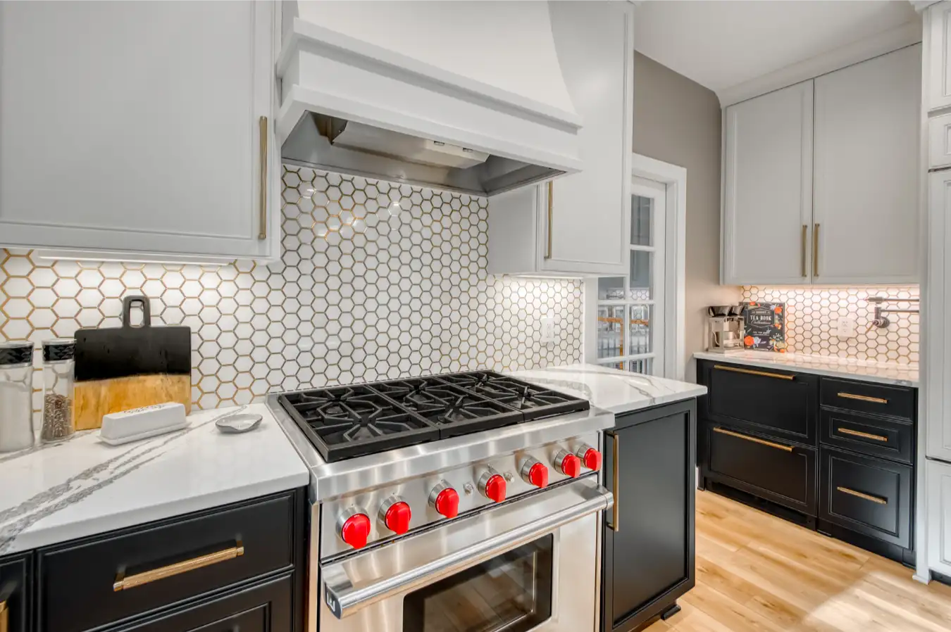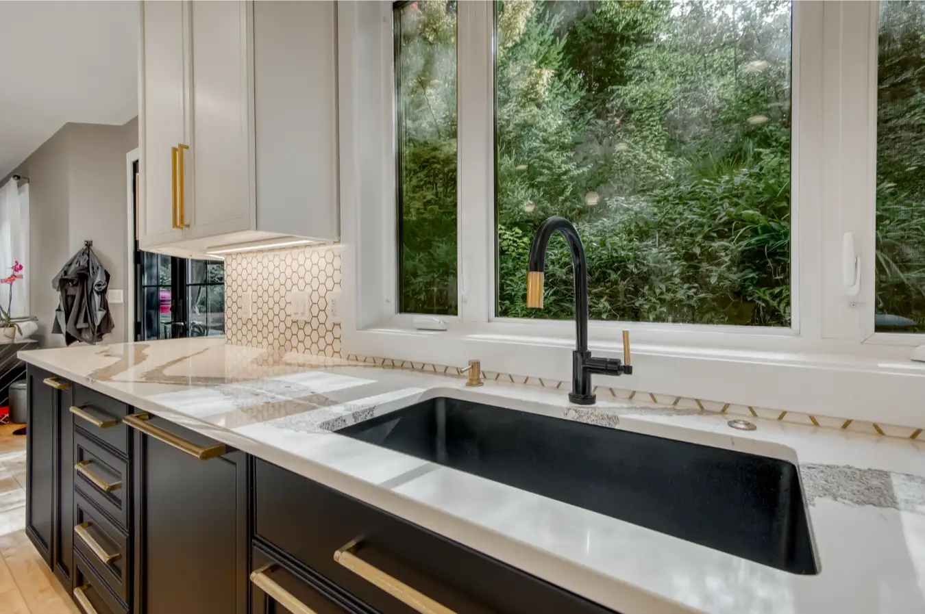 Brass hex backsplash
